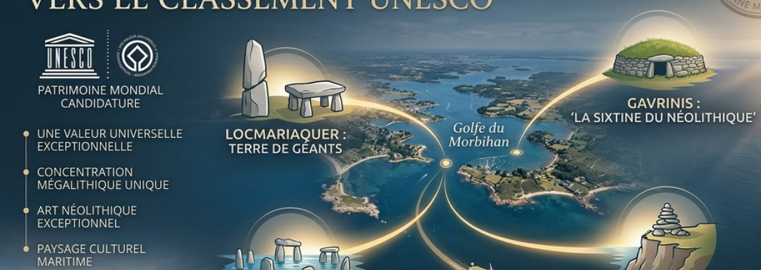 De la pointe de Locmariaquer aux falaises d'Arzon, nous vous emmenons pour une traversée contemplative au cœur d'un patrimoine qui s'apprête à marquer l'histoire mondiale de l'archéologie.